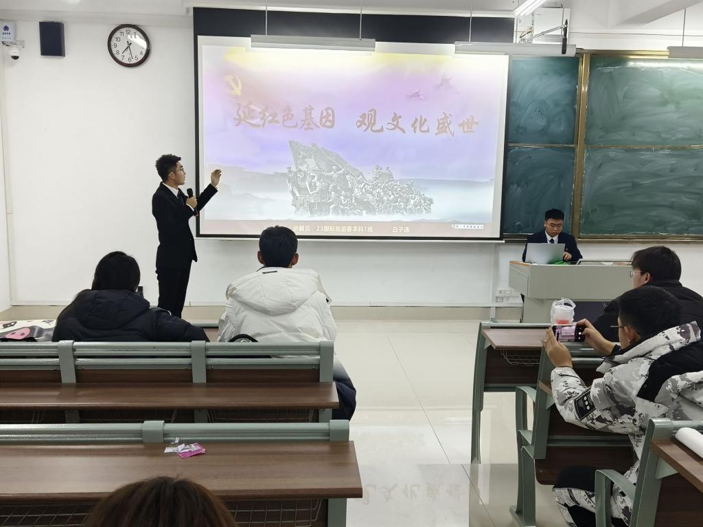 本次大赛以赓续红色血脉,讲好文化自信为题,参赛选手结合文化自信展厅设计方案PPT,以饱满的热情、铿锵有力的声音,声情并茂地讲述了一篇篇党史故事,一代代革命先辈的红色故事,充分展现了新时代青年员工爱党、爱国、昂扬向上的精神风貌,抒发了对革命先辈的敬仰之情。最后,现场评委分别从主题内容、语言表达、时间掌握等多个角度对参赛选手的表现进行打分与点评,23酒管张嘉旭同学荣获一等奖。