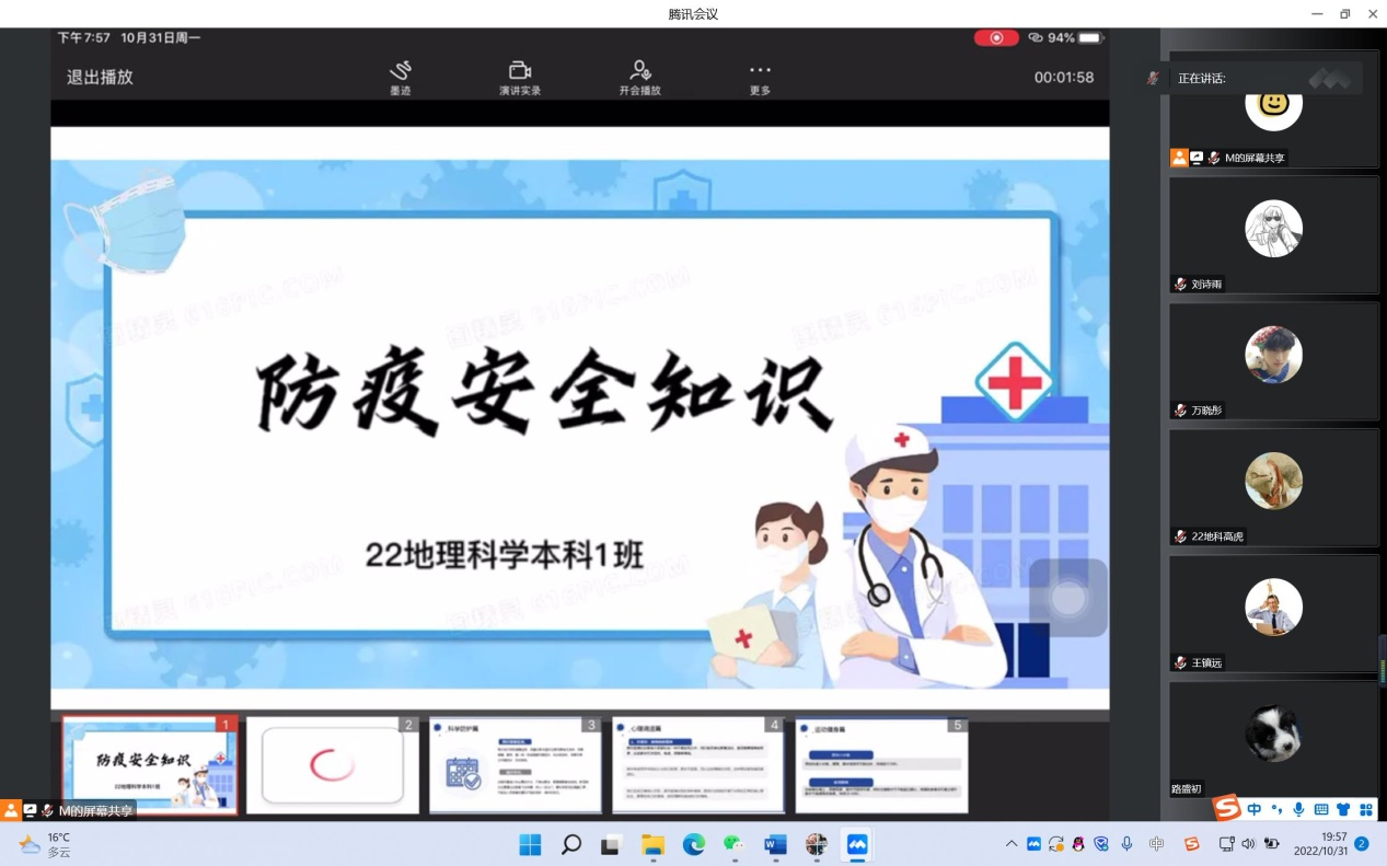 此次班会紧密联系了当下的疫情形势以及同学们的学习与生活,使同学们认识到作为新时代接班人应提高自我防护意识,做好疫情防控工作,担当起青年的使命与责任。