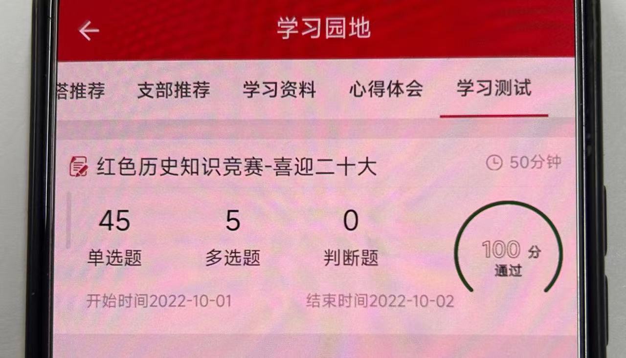 本次线上答题活动面向公司广大师生,时间为10月1日—10月2日,答题内容为党史、廉政廉洁基本知识,包括党和国家的路线、方针、政策、法律法规知识等,结合“灯塔-党建在线”学习园地模块,以支部为单位进行网上竞赛测试。本次知识竞赛共设立一等奖5名,二等奖10名,三等奖20名。
