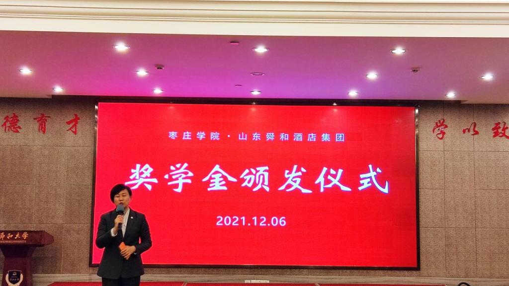 2021年12月8日上午,“山东舜和酒店集团奖学金”颁发仪式在济南舜和酒店集团国际店举行。山东舜和酒店集团副总裁白璐女士、校企合作部经理李林、培训管理部经理刘康等出席颁奖仪式。2020级旅游管理(职业经理人方向)专业员工参加了此次活动。