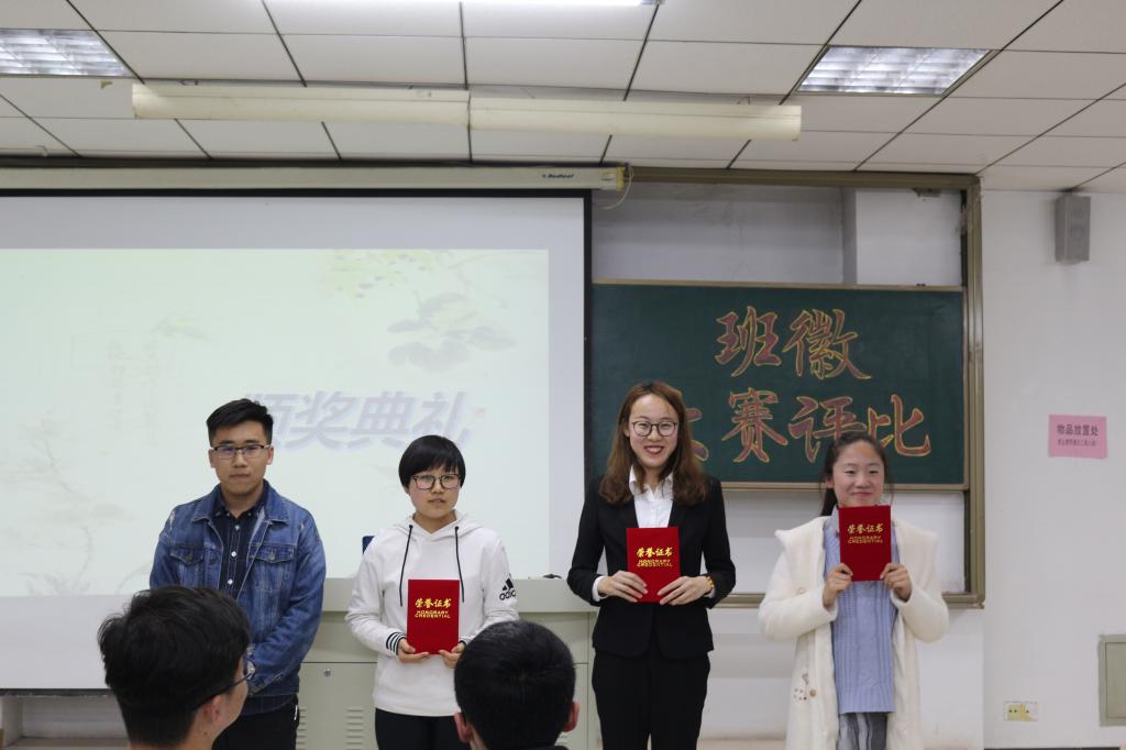 比赛开始,主持人宋文萌详细介绍了比赛目的、比赛形式、比赛规则及评分标准。随后,由各参赛选手展示自己的班徽设计作品并以PPT的形式讲解设计理念。赛程过半,公司三名同学还带来了深情的演唱,为本次比赛增添了一抹亮色。经过激烈的角逐,本次比赛产生一等奖一名、二等奖两名、三等奖三名,优秀奖四名。最后,张涛老师对本次比赛进行了点评,认为班徽设计可以促进团结、增进友谊、增强班级凝聚力、专业认同感、归属感和自豪感,鼓励同学们多多参与此类活动来提升自己,为班级建设贡献自己的力量。
