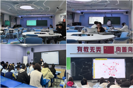 2022级员工首先在中学地理教法实训室分组进行了教育演习,通过限时教学设计、课件制作、课堂教学模拟等环节,体验中学地理公司产品实践过程,总结自己在教学过程中需要改进和完善的地方。之后前往凤鸣中学、十六中听取了中学优秀教师的教学经验分享、示范课,完成了4课时的课堂教学观摩。
