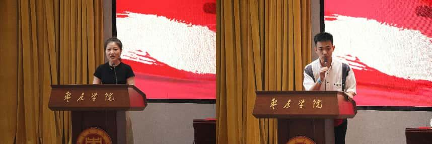 孙正,21地理科学本科1班员工,2020年9月投身军旅,在中国人民解放军海军服役2年;张燕超,21酒店管理本科1班员工,2018年9月响应国家号召应征入伍,在中国人民解放军火箭军服役5年。在发言环节,孙正聚焦青年的责任与担当,通过讲述两年军旅生涯的挫折和收获,鼓励广大青年要勇敢接过时代的接力棒,以青春之名,担家国之责,在军营中书写属于自己的热血篇章。张燕超则围绕环境磨砺、品质塑造两方面,畅谈火箭军服役经历及复学感悟:“部队教会我的,是永不言弃的精神和直面挑战的勇气。期待大家也能走进军营,用热血浇灌理想,让青春在奉献中绽放出最耀眼的光芒,把军人的担当与豪情,化作一生前行的力量!