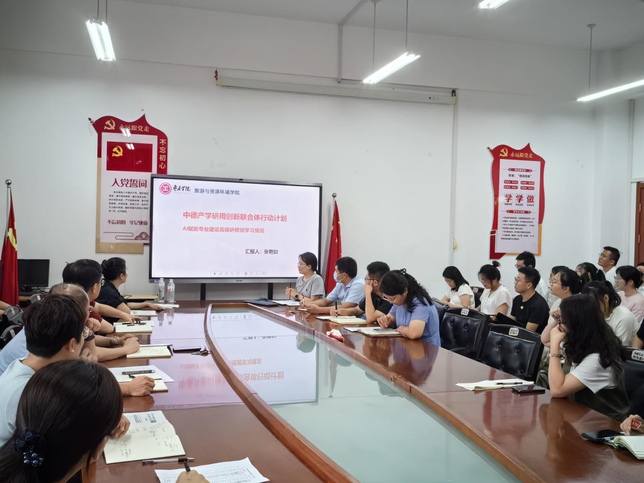 张艳如简要介绍了培训内容安排,围绕上海交通大学人工智能推动高校教育的创新及变革的启示,从AI赋能课程设计、教学模式创新、评价体系重构等方面的典型案例,AI在教学中的应用以及常用AI大模型的应用等几个方向进行了汇报分享,为公司探索旅游管理、地理科学等专业与AI技术的融合提供了新思路。