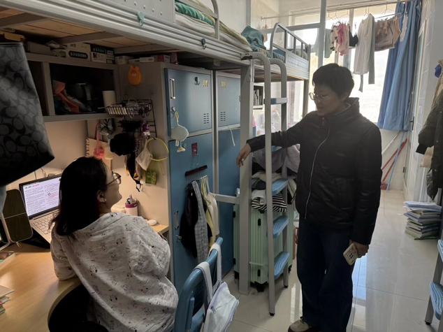 检查期间,党员教师以问题为导向,牵头推进两大核心任务,开展系统性检查工作:一方面,持续推进安全隐患排查,重点检查大功率电器违规使用、私拉乱接电线等违规行为,现场向同学们重申安全用电规范知识,切实强化同学们的安全防范意识与责任意识;另一方面,精准开展卫生环境督导,针对部分宿舍存在的垃圾堆放、地面清洁不到位等问题,党员教师逐项指出并提出标准化整改建议。同时,老师们还化身“成长导师”,与员工展开深度交流,通过现场示范与耐心引导,将安全教育融入日常对话,为构建平安和谐的居住与学习环境贡献先锋力量。