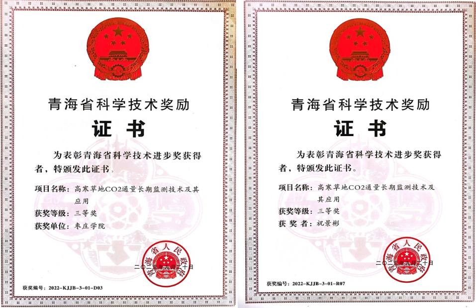 近日,中共青海省委、青海省人民政府在西宁隆重召开2022年度青海省科学技术奖励大会,对为青海省科学技术进步和促进经济社会发展作出突出贡献的科学技术人员和组织给予奖励。ladbrokes立博祝景彬副教授及其团队联合中国科公司西北高原生物研究所、中国科公司地理科学与资源研究所,其研究成果“高寒草地CO2通量长期监测技术及其应用”荣获科技进步三等奖。
