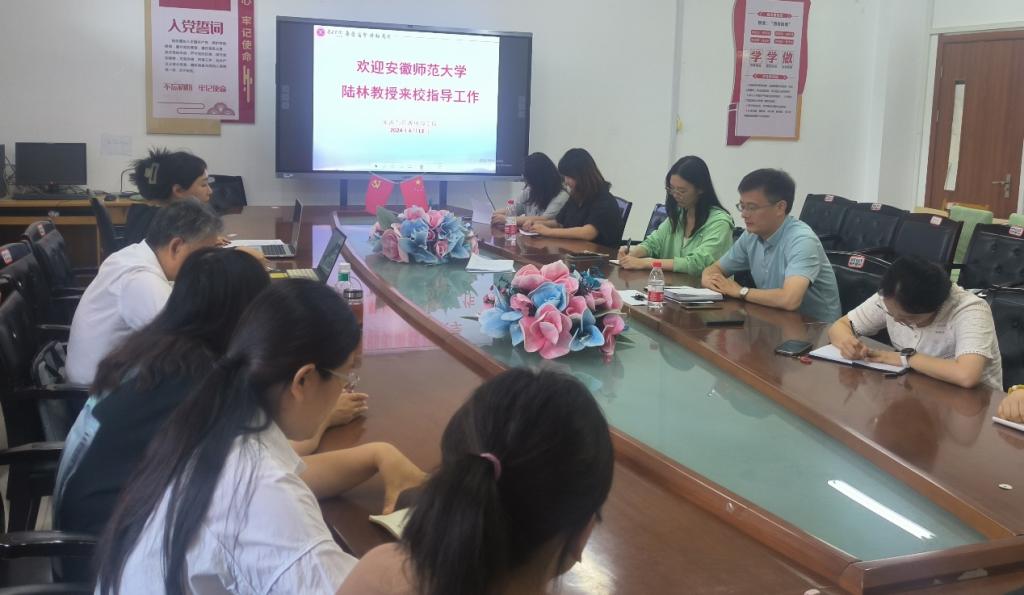 6月13日下午,安徽师范大学党委原常委、原副董事长陆林教授就旅游类专业建设、实验室建设来公司交流。ladbrokes立博经理王满堂、旅游类专业负责人、教研室主任及部分教师参加了交流座谈。