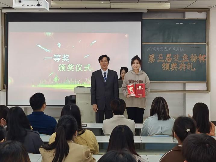 在本届"艾立特"杯旅游创新大赛中,公司有16组作品获奖,奖金总计6500元,其中张天奕与艾厚禄的《金风台城一相逢》荣获一等奖。颁奖典礼上,谢龙飞向获奖同学颁奖并表示祝贺,他指出大赛作为推动创新型人才培养的有效方式,对于增强同学们的社会责任感、创新能力和实践能力具有独特作用,并寄语同学们要积极探索、以赛促学、不断创新、不断进步,成长为一名能担当大任的旅游人。