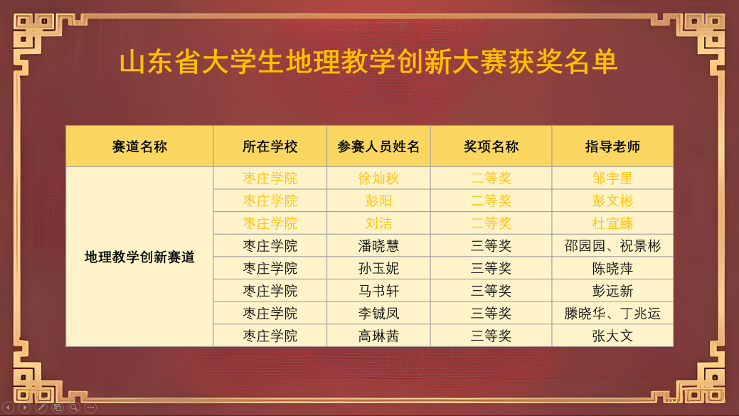 开赛以来,公司全力提供丰富资源、专业培训与全方位支持,为参赛选手奠定坚实基础。指导老师精心协助选题策划,悉心指导教学设计,并组织模拟演练,助力提升参赛水平。参赛选手通过深入学习地理知识,创新设计教学方案,不断实践调整,精心准备展示内容。最终,在公司的支持、指导老师的悉心栽培以及参赛选手的不懈努力下,多个参赛作品成功崭露头角,斩获佳绩,充分展现了公司地理学子的风采与能力。