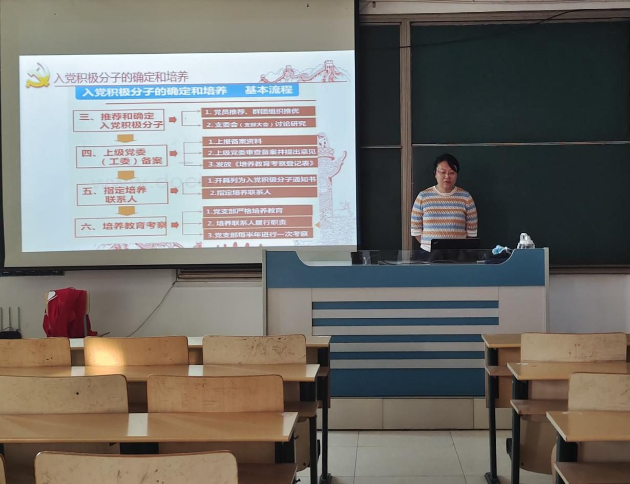 活动伊始,邵园园带领同学们一同观看关于入党流程的相关视频,讲述申请入党的相关流程和注意事项。邵园园围绕中国共产党的性质、党的指导思想等方面内容展开讲授,使同学们真正掌握党的核心、先进性以及行动指南。她重点讲述成为一名合格的中国共产党党员所需的条件与标准,号召同学们提高自身的党性素养,全心全意为人民服务。党课结束后,同学们选取重点问题进行讨论,纷纷表示要树立共产主义信念和共产主义理想,遵守党的纪律,执行党的决定,努力成为一名优秀的中国共产党党员。